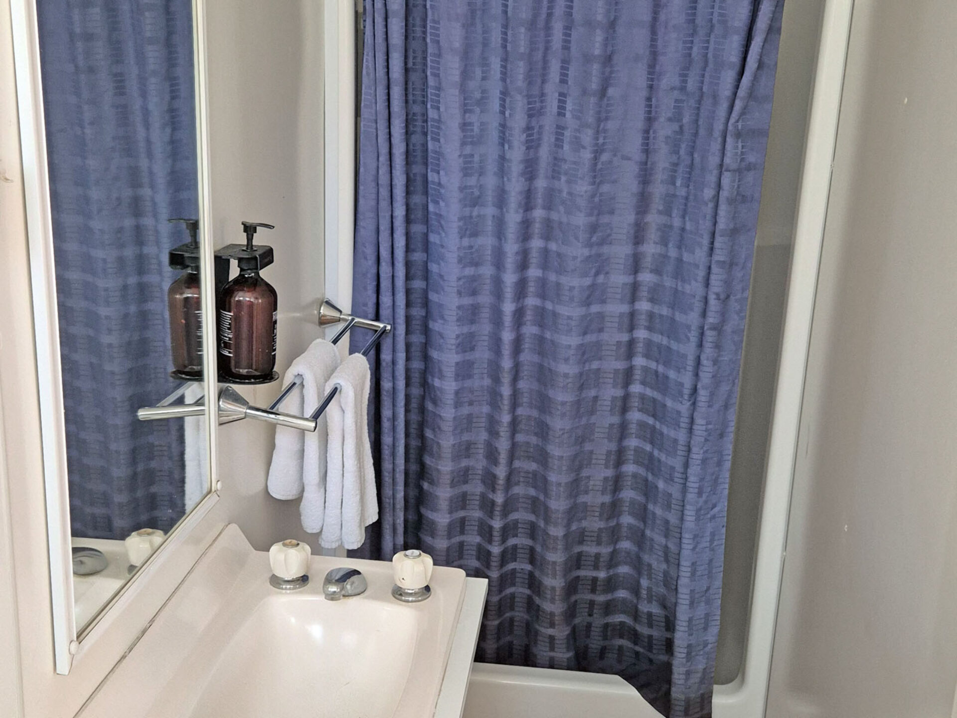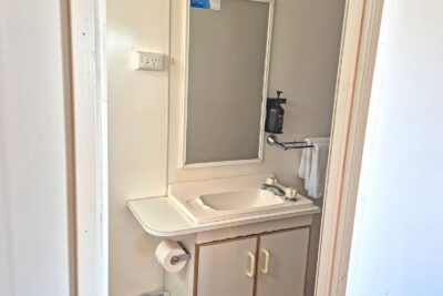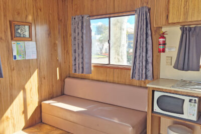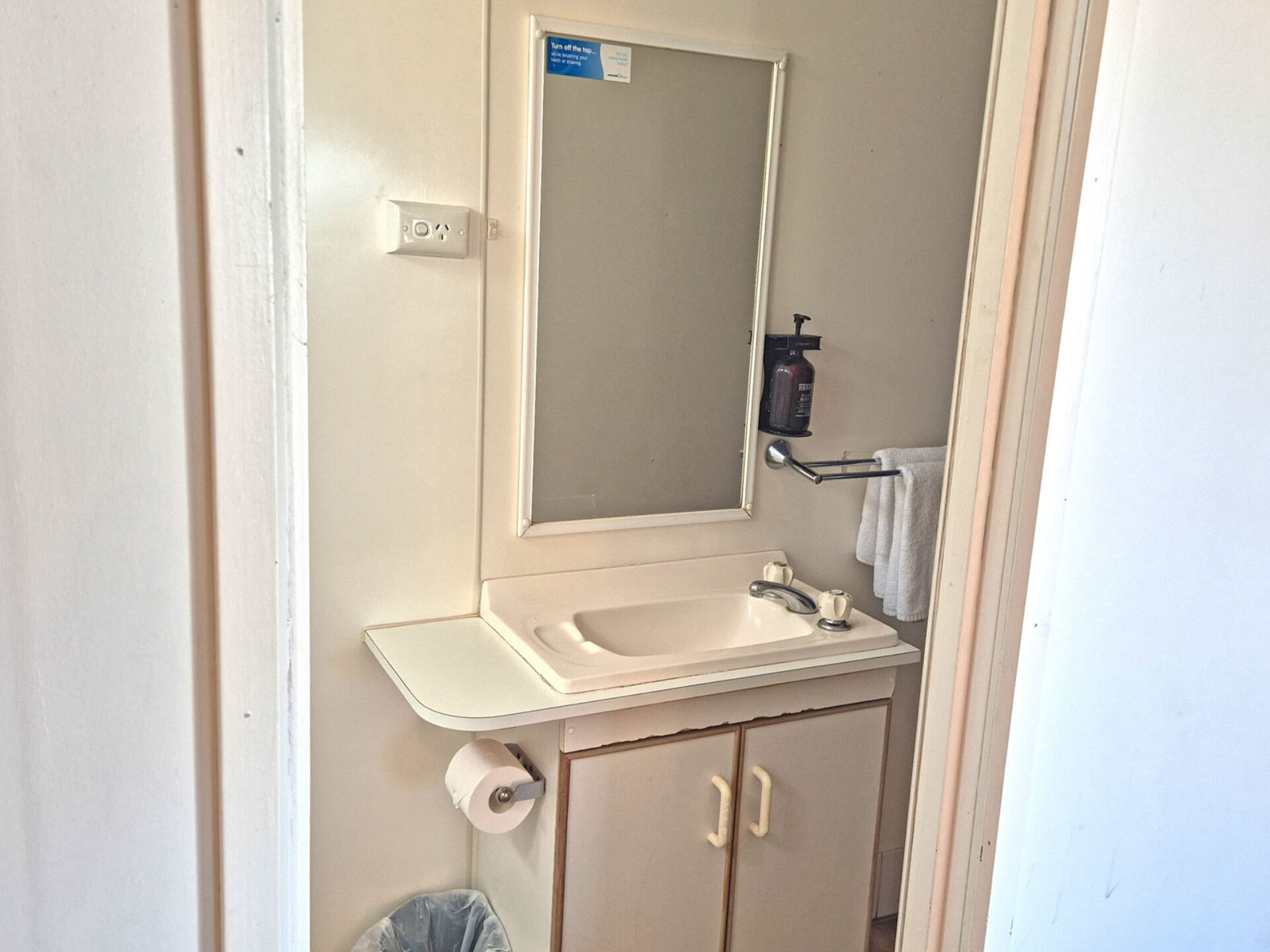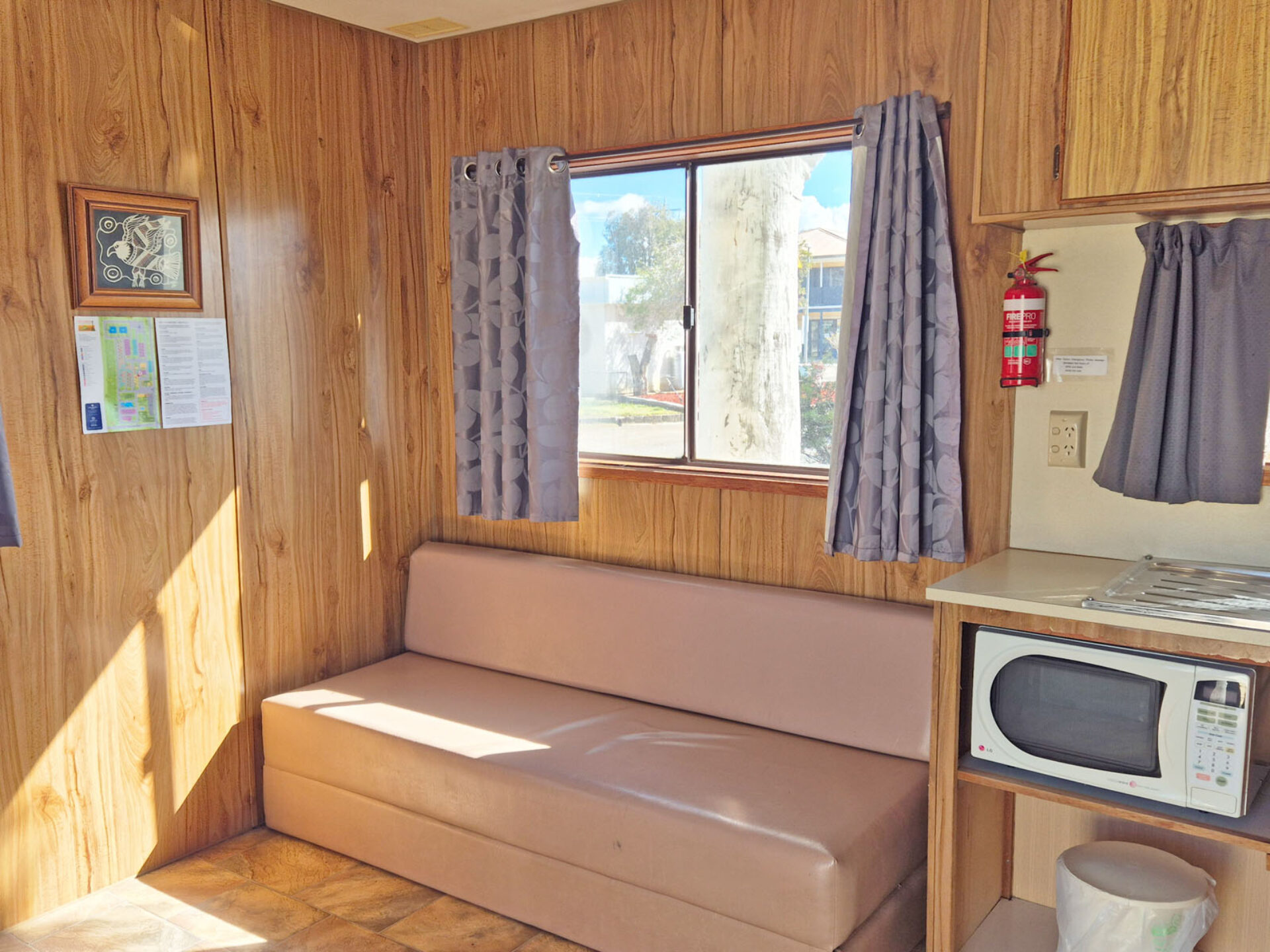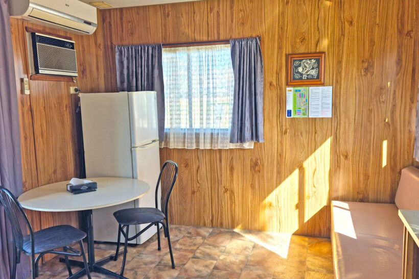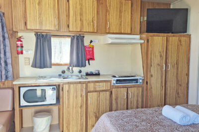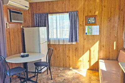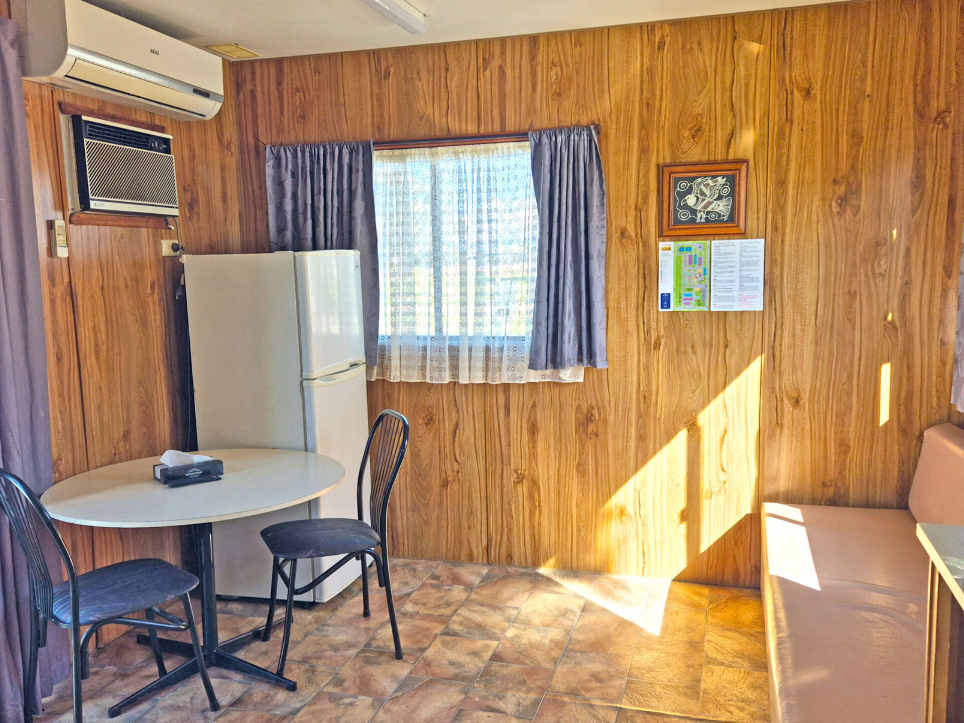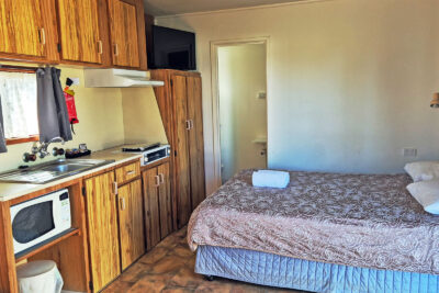 This studio sleeps up to two guests with a double bed and includes a private bathroom. The kitchenette is equipped with an electric cooktop, microwave, toaster, and full-size fridge, making it easy to prepare simple meals. Air-conditioning, a TV, and a dining area offer a comfortable and practical space for short or extended stays.