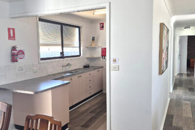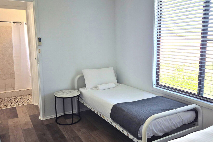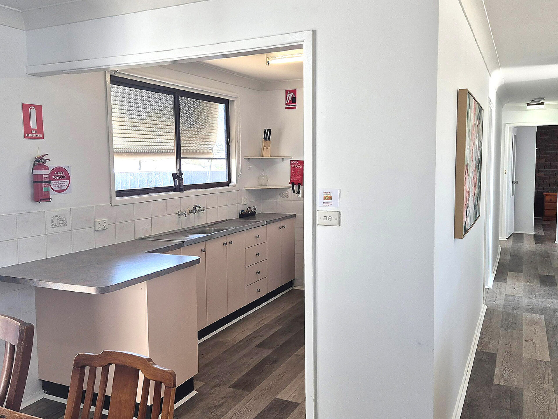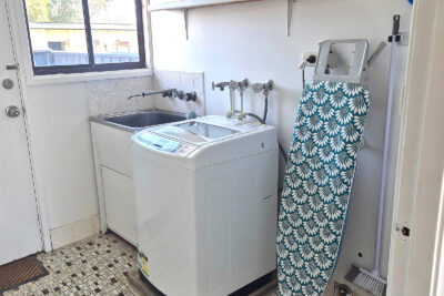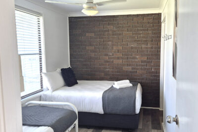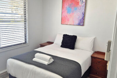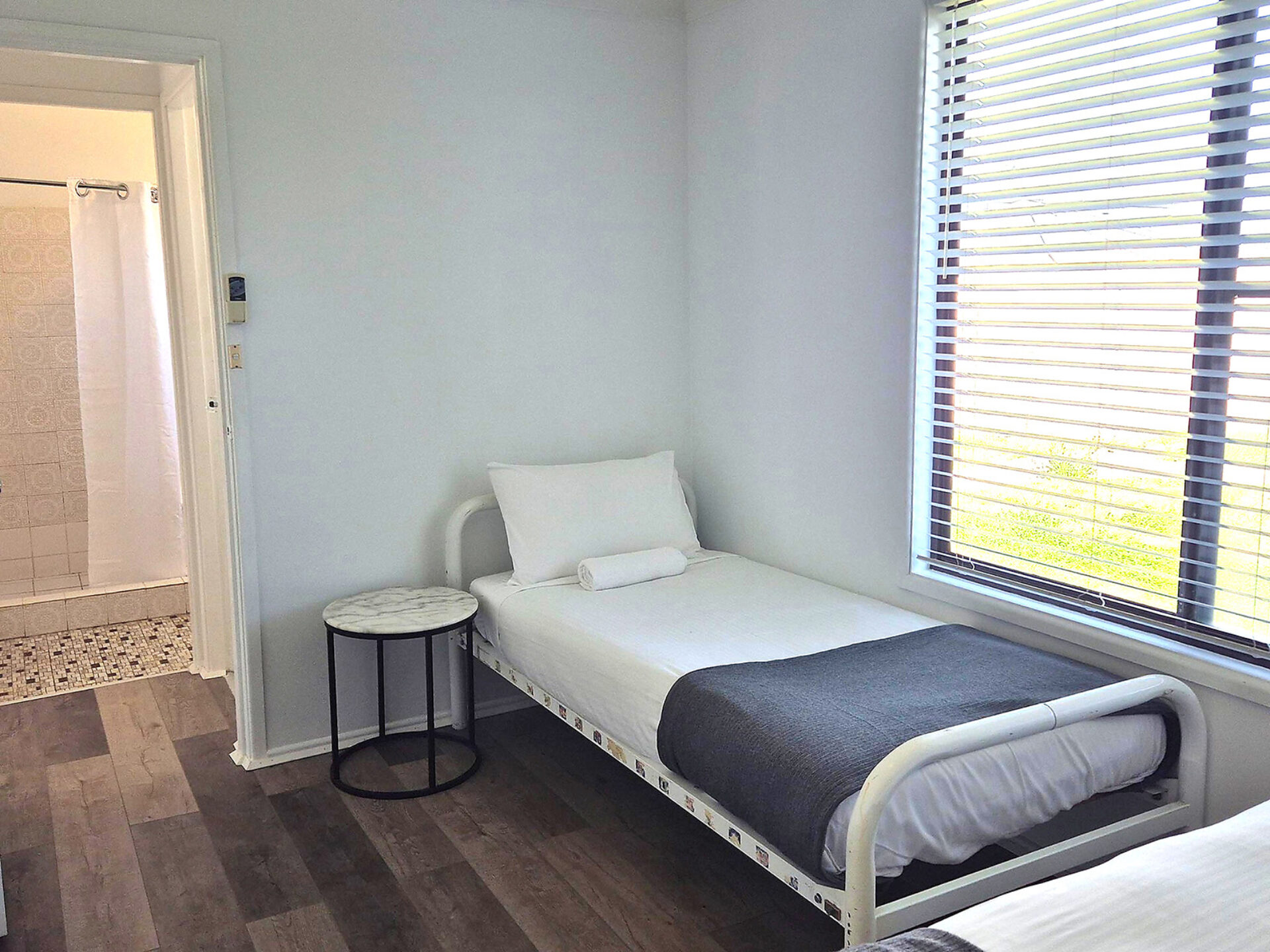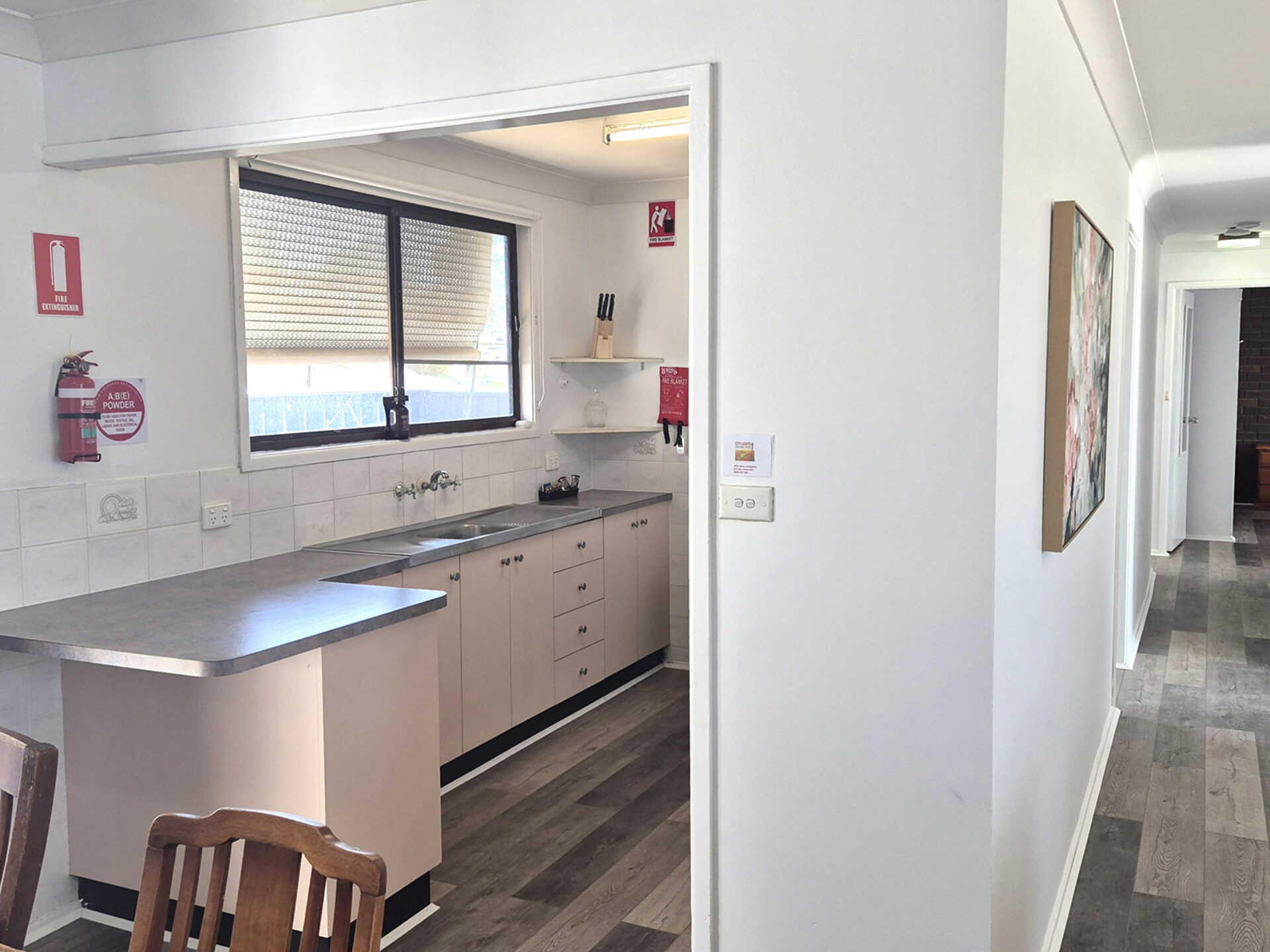 Ideal for larger families or groups, this three-bedroom house sleeps up to eight guests with one queen beds, two double beds, and two single beds. It features a spacious lounge with TV, air-conditioning, dining area, and a full kitchen including electric cooktop, oven, microwave, and full-size fridge. A private bathroom, separate toilet, and in-house laundry add to the convenience.