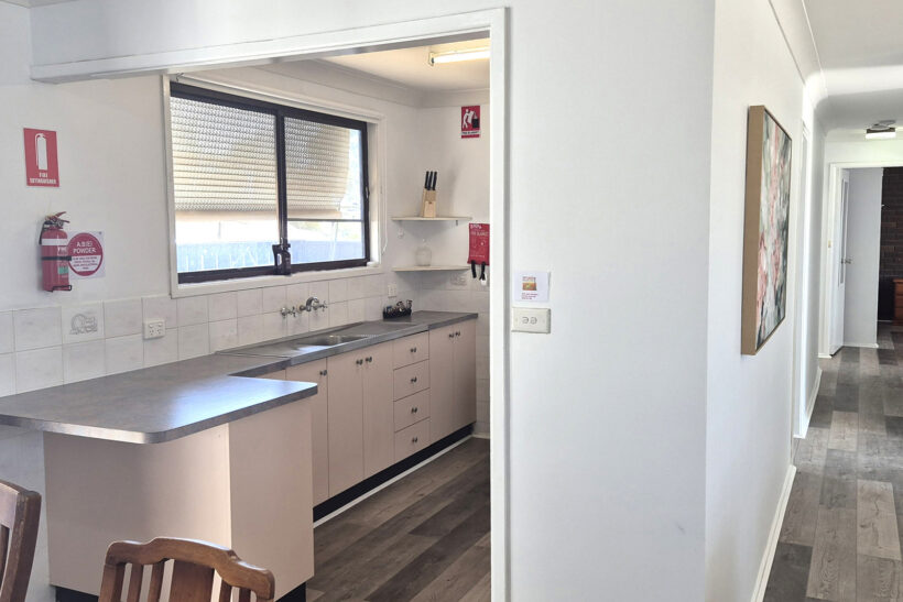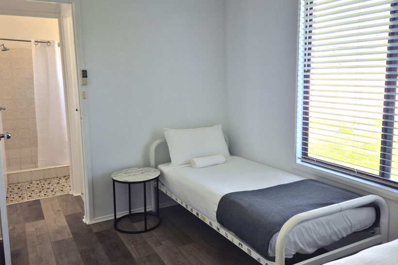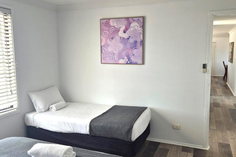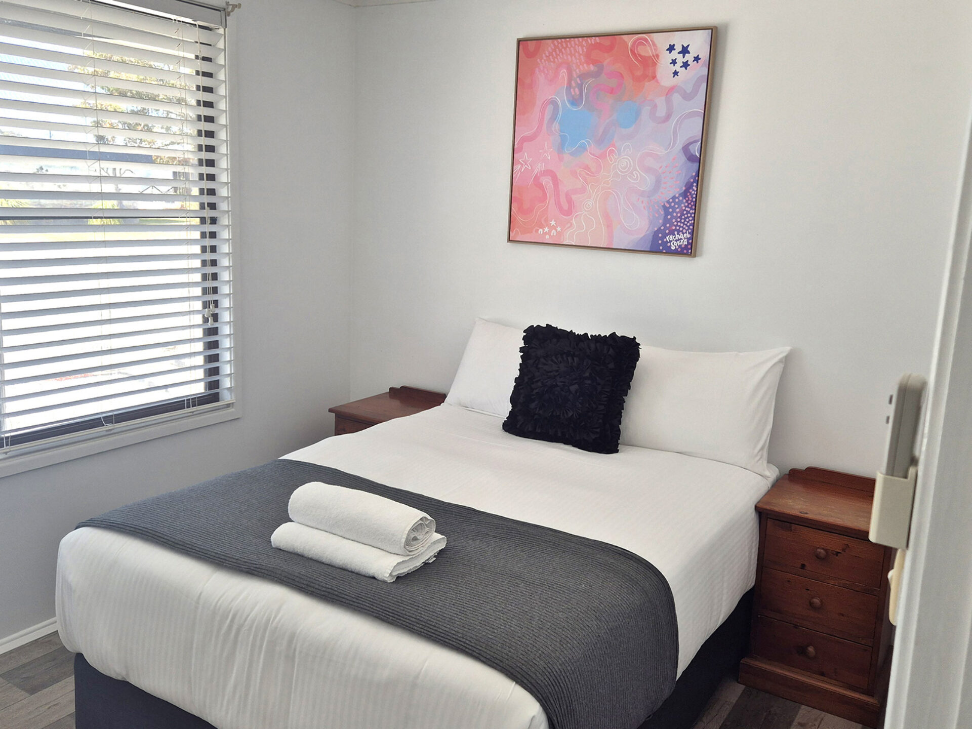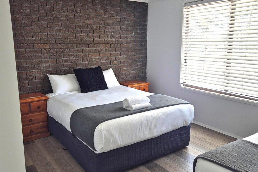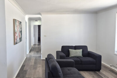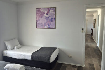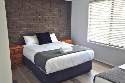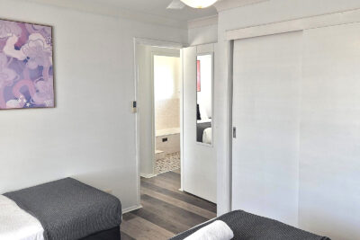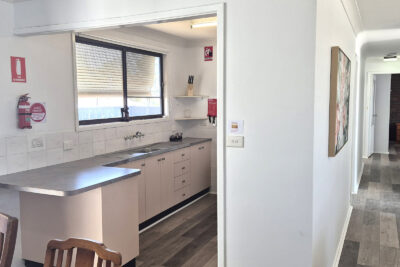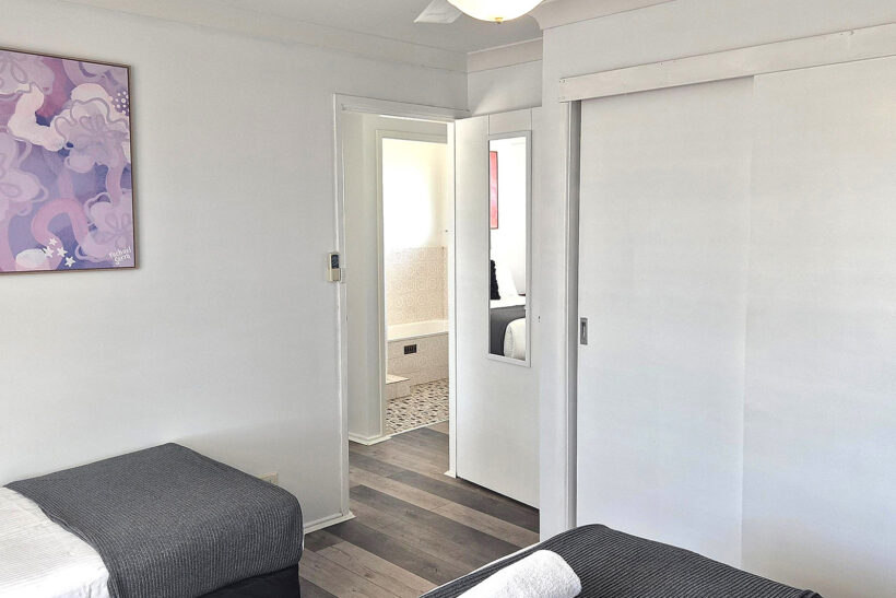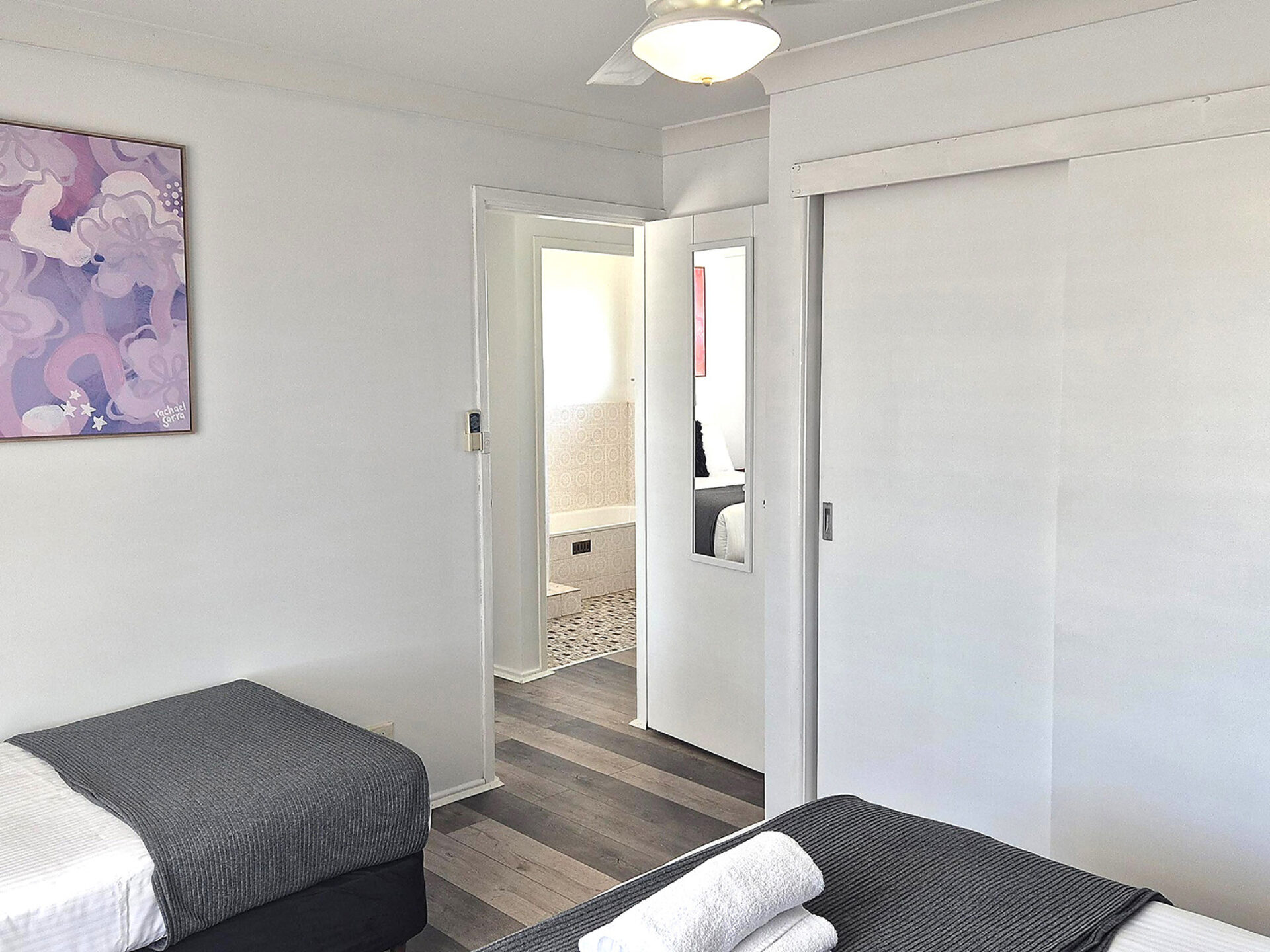 Ideal for larger families or groups, this three-bedroom house sleeps up to eight guests with one queen beds, two double beds, and two single beds. It features a spacious lounge with TV, air-conditioning, dining area, and a full kitchen including electric cooktop, oven, microwave, and full-size fridge. A private bathroom, separate toilet, and in-house laundry add to the convenience.