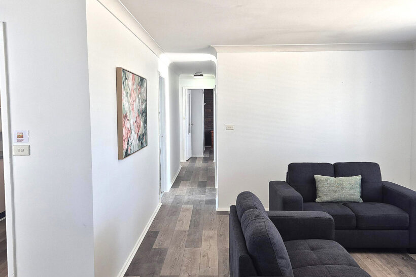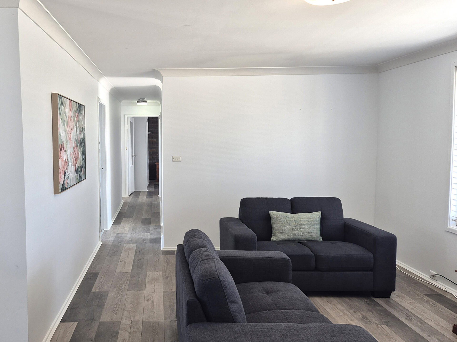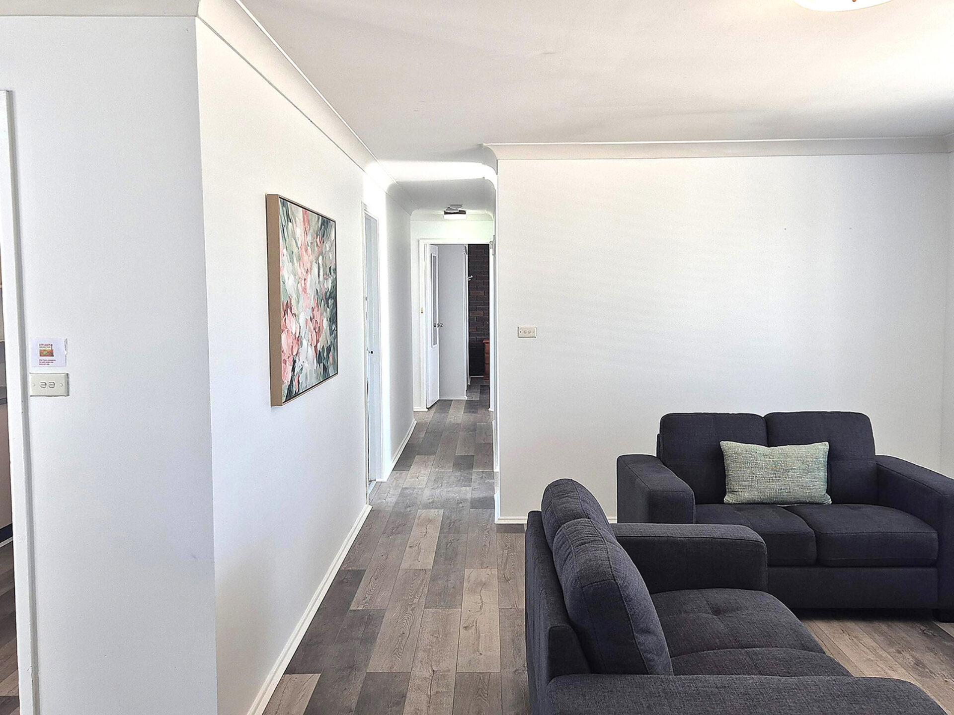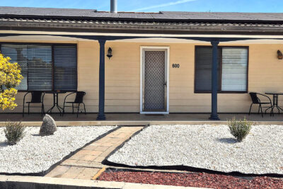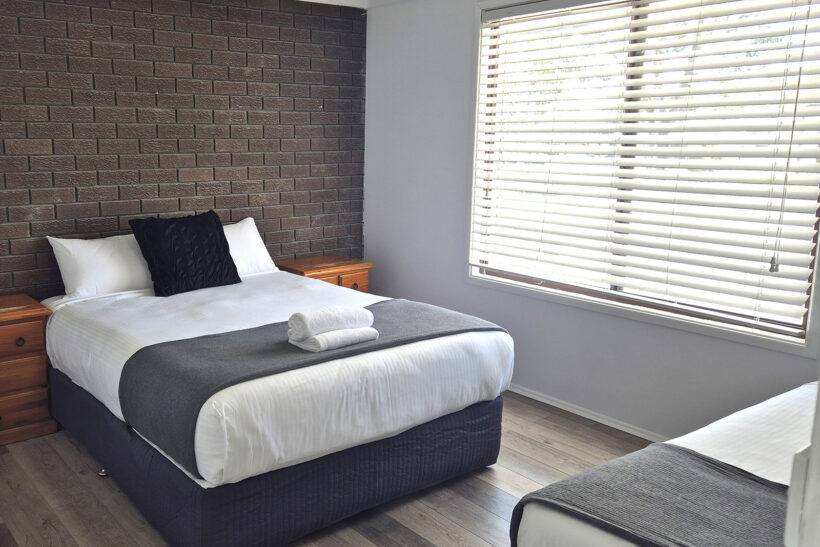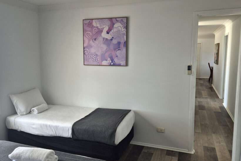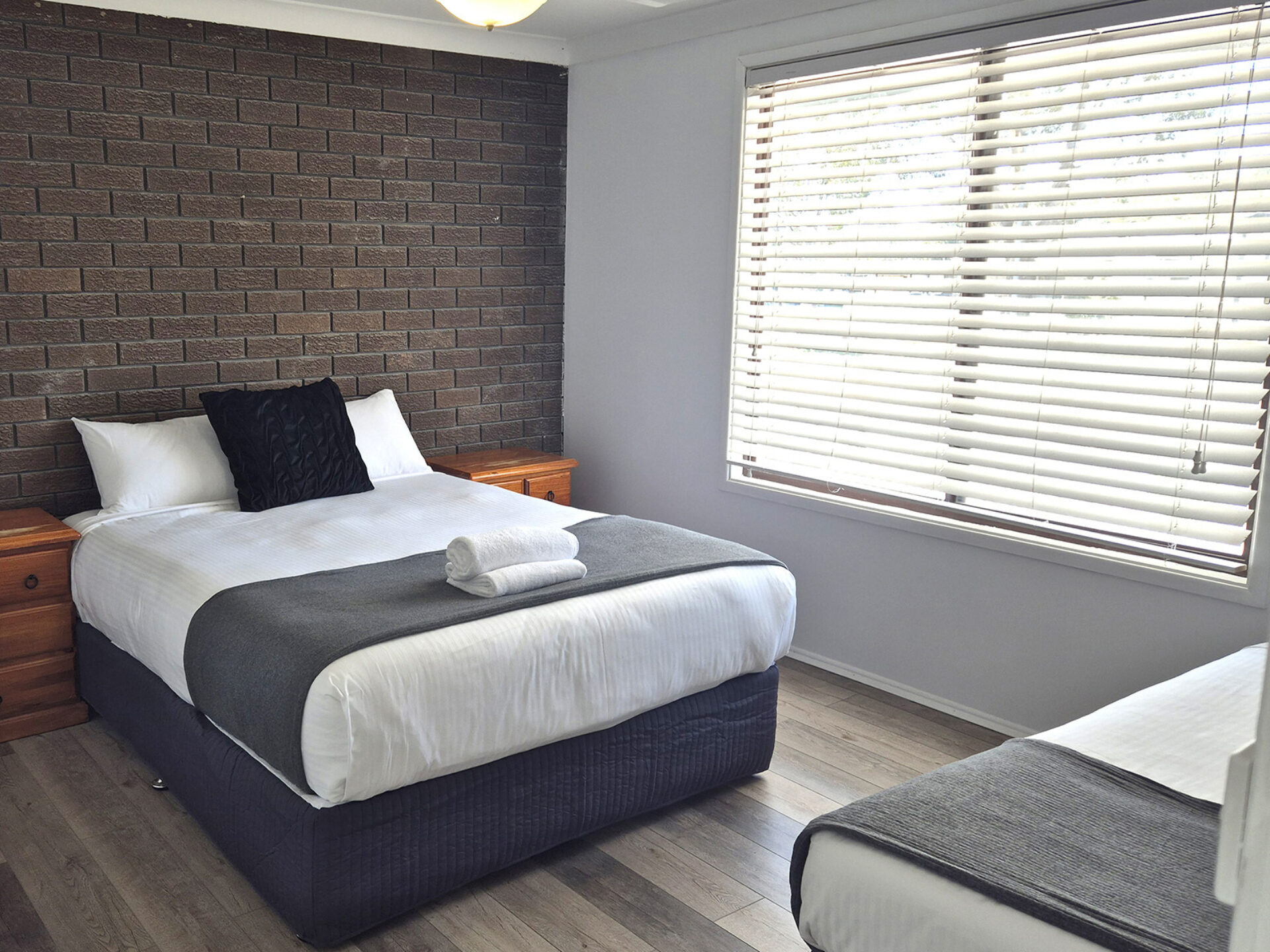 Ideal for larger families or groups, this three-bedroom house sleeps up to eight guests with one queen beds, two double beds, and two single beds. It features a spacious lounge with TV, air-conditioning, dining area, and a full kitchen including electric cooktop, oven, microwave, and full-size fridge. A private bathroom, separate toilet, and in-house laundry add to the convenience.